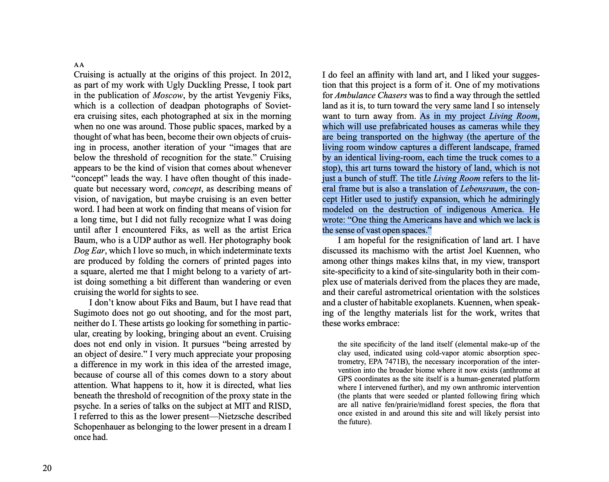 Living Room, 2022–, in progress. A series of views from a house trailer being shipped on a US highway, each photograph capturing an identically framed living-room window facing a different landscape. Two research photographs and an excerpted discussion of Living Room in “The Poetics of Images: Abraham Adams and David Joselit in Conversation,” in Ambulance Chasers (MIT Press, 2022).